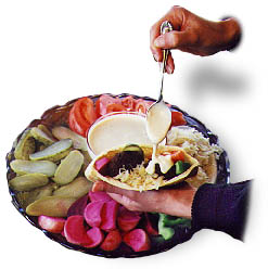 Arrange in halved loaves of pita (Arabic bread), topped with salad vegetables and Tahina Sauce. Hot pepper may also be sprinkled on top.
